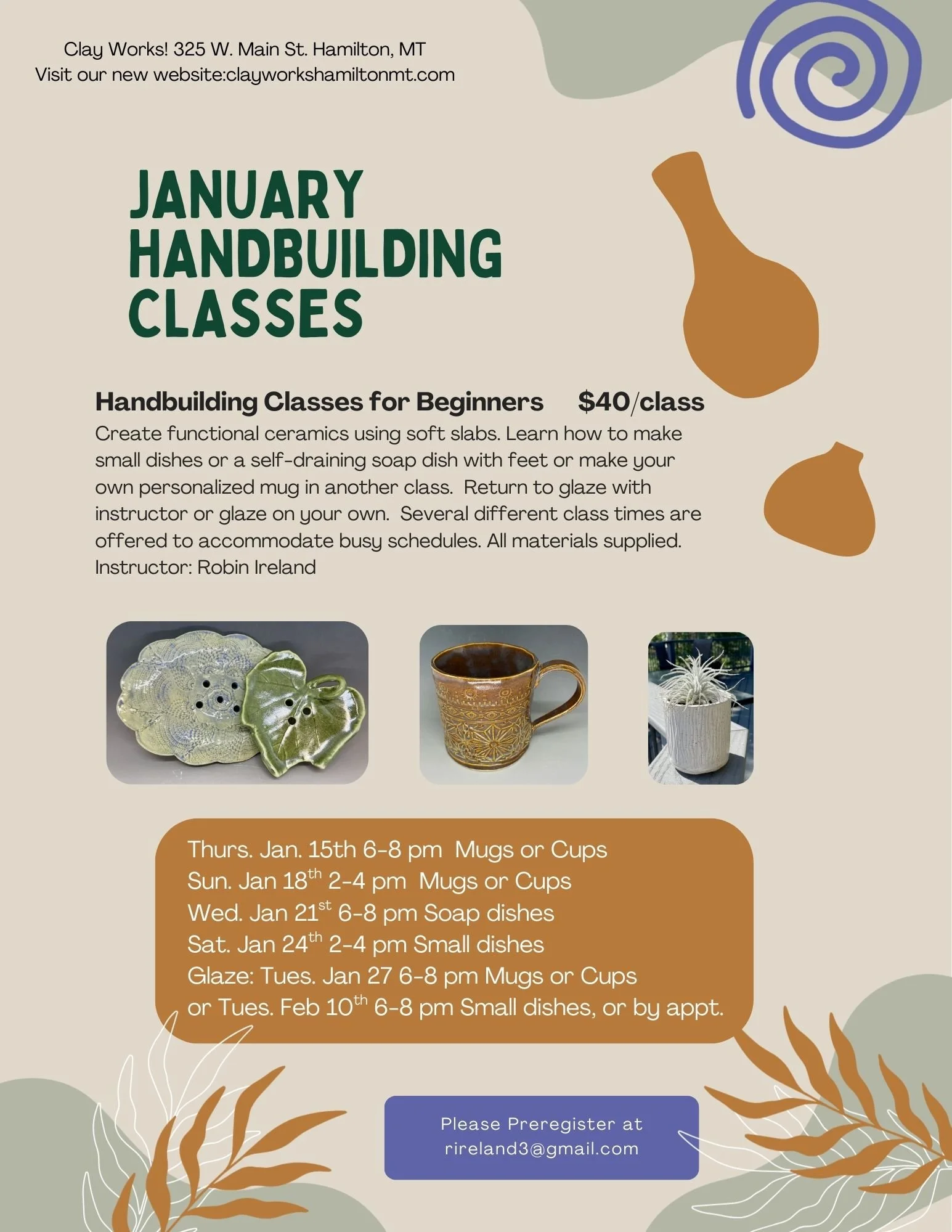 Contact Clay Works of the Bitterroot to schedule https://www.clayworkshamiltonmt.com